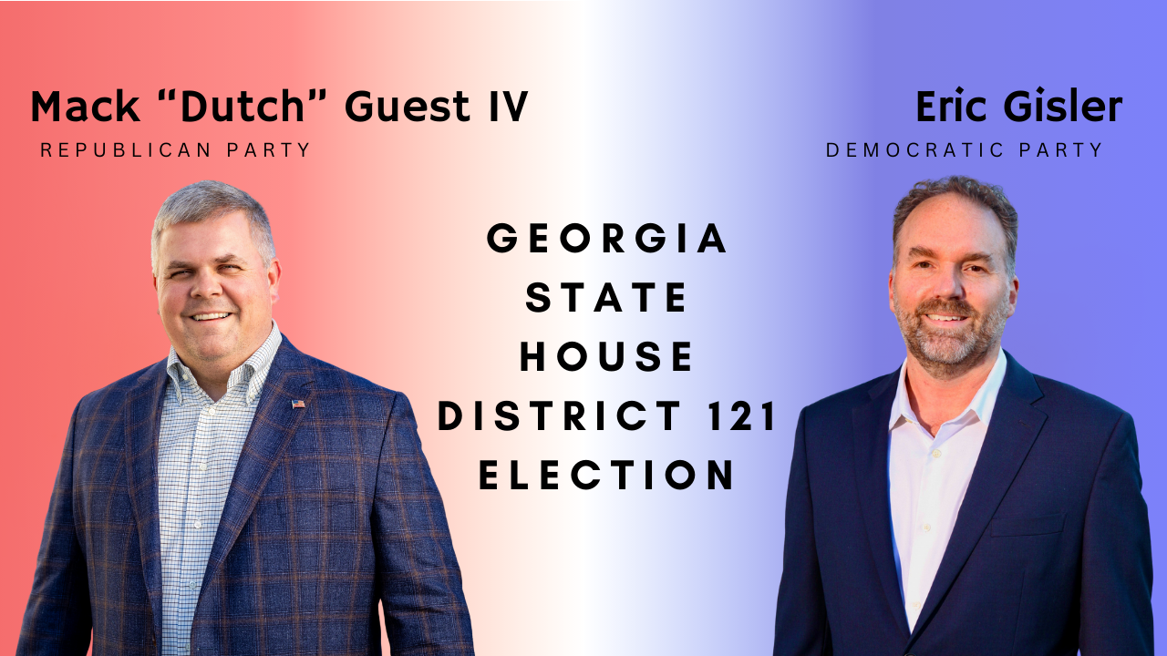 Both Republican Mack “Dutch” Guest IV and Democrat Eric Gisler are on the ballot to become the house state representative for House District 121. Guest has lived in Watkinsville since 1998, and has two children. He owns LAD Truck Lines, a logistics and distribution company based in Watkinsville. He is also involved in the community, previously serving as the president of the Oconee County Rotary Club and Athens Touchdown Club.