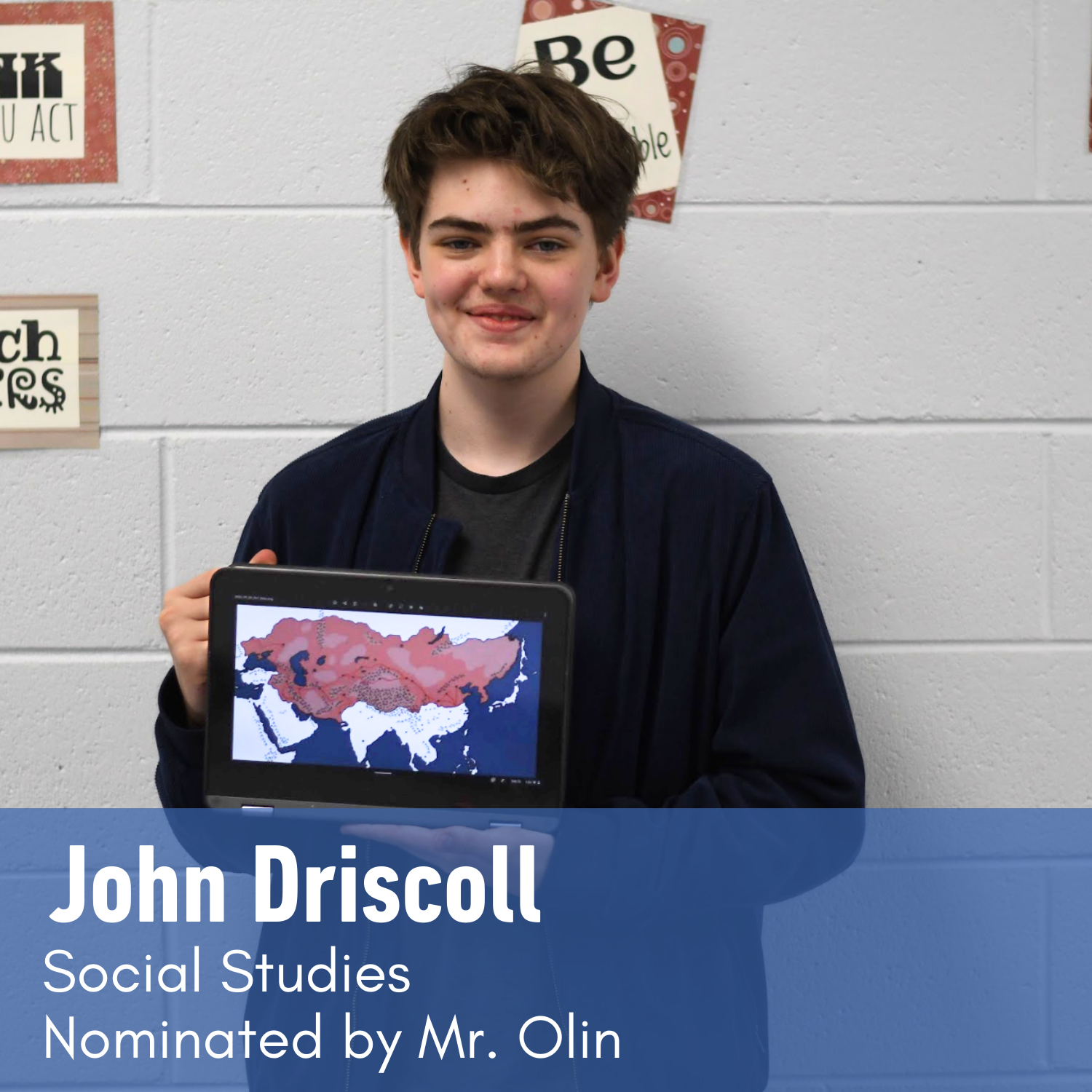 Sophomore John Driscoll was nominated for GHP by Social Studies teacher Robert Olin. On Friday Feb. 6, the semifinalists were announced, and Driscoll was excited to hear he had made it.