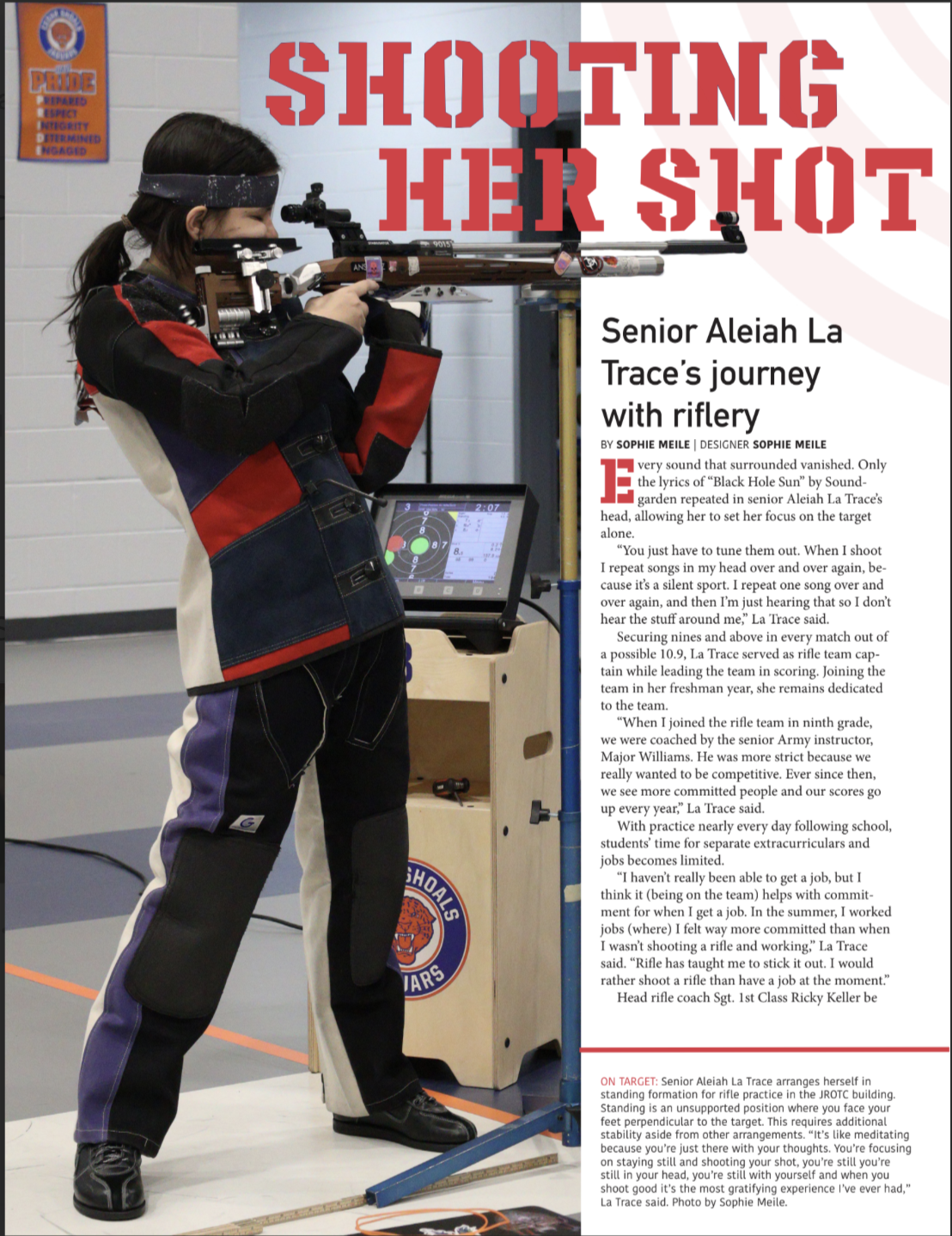 Being a part of the rifle team has brought La Trace a space to breathe within a sport that she loves. Rifle continues to be one of her favorite parts of being at school.