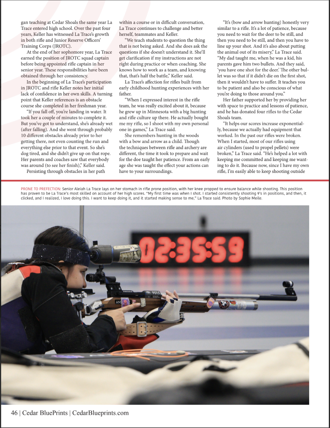 La Trace plans to continue shooting following high school, and because of the skillset she contributes to the team, she has been granted an offer to shoot at Georgia Military College.